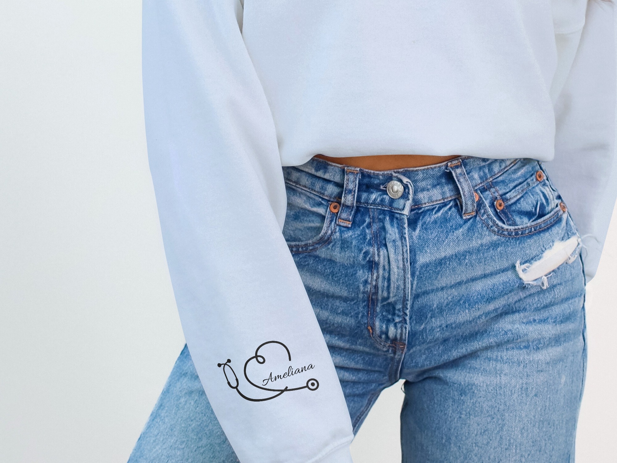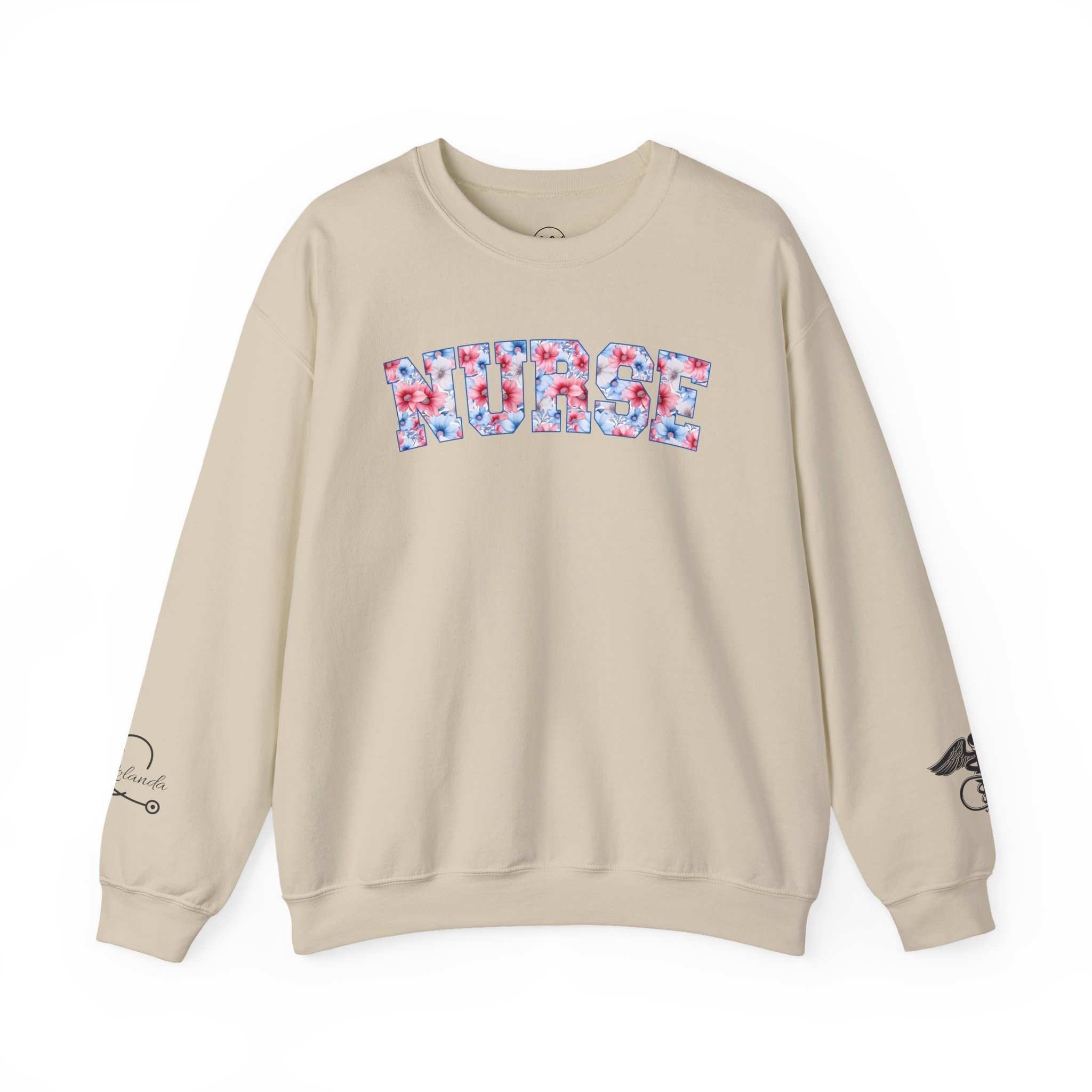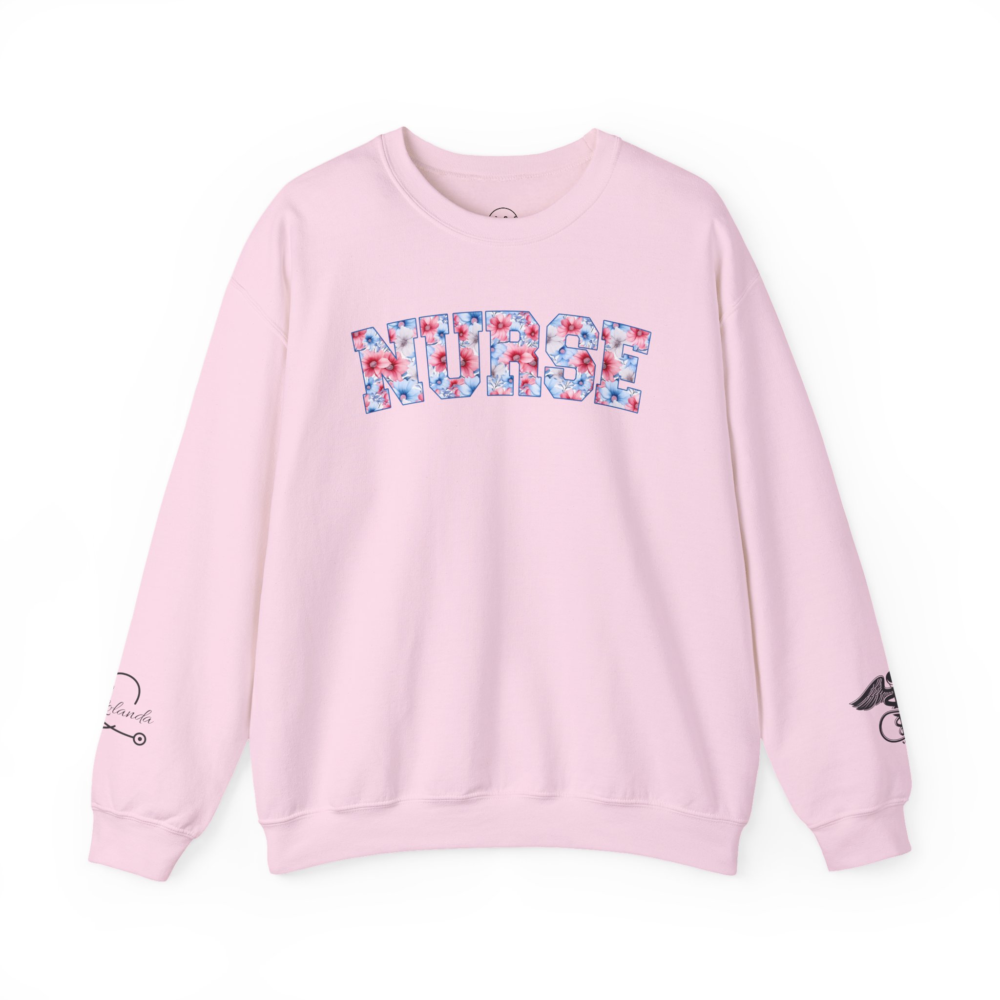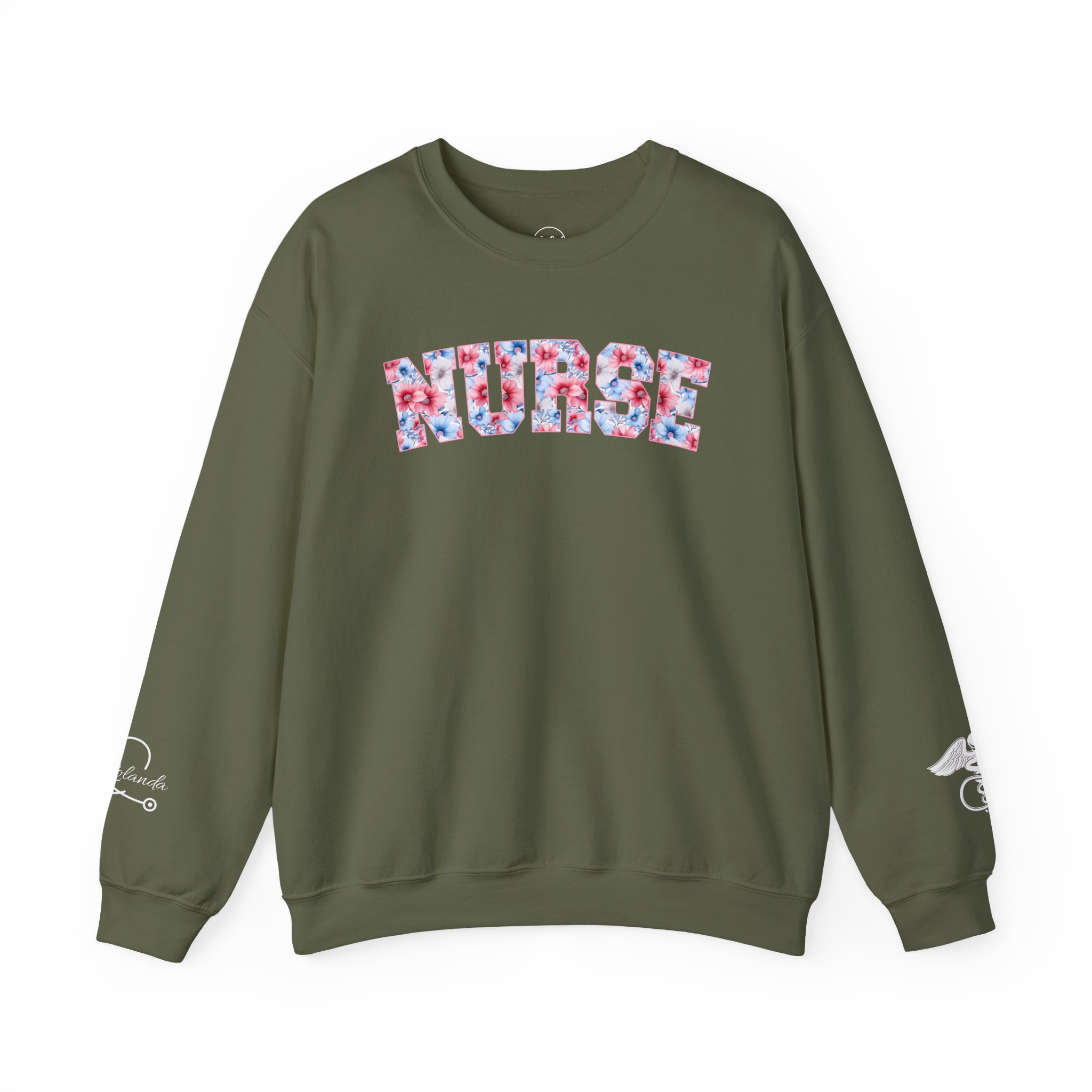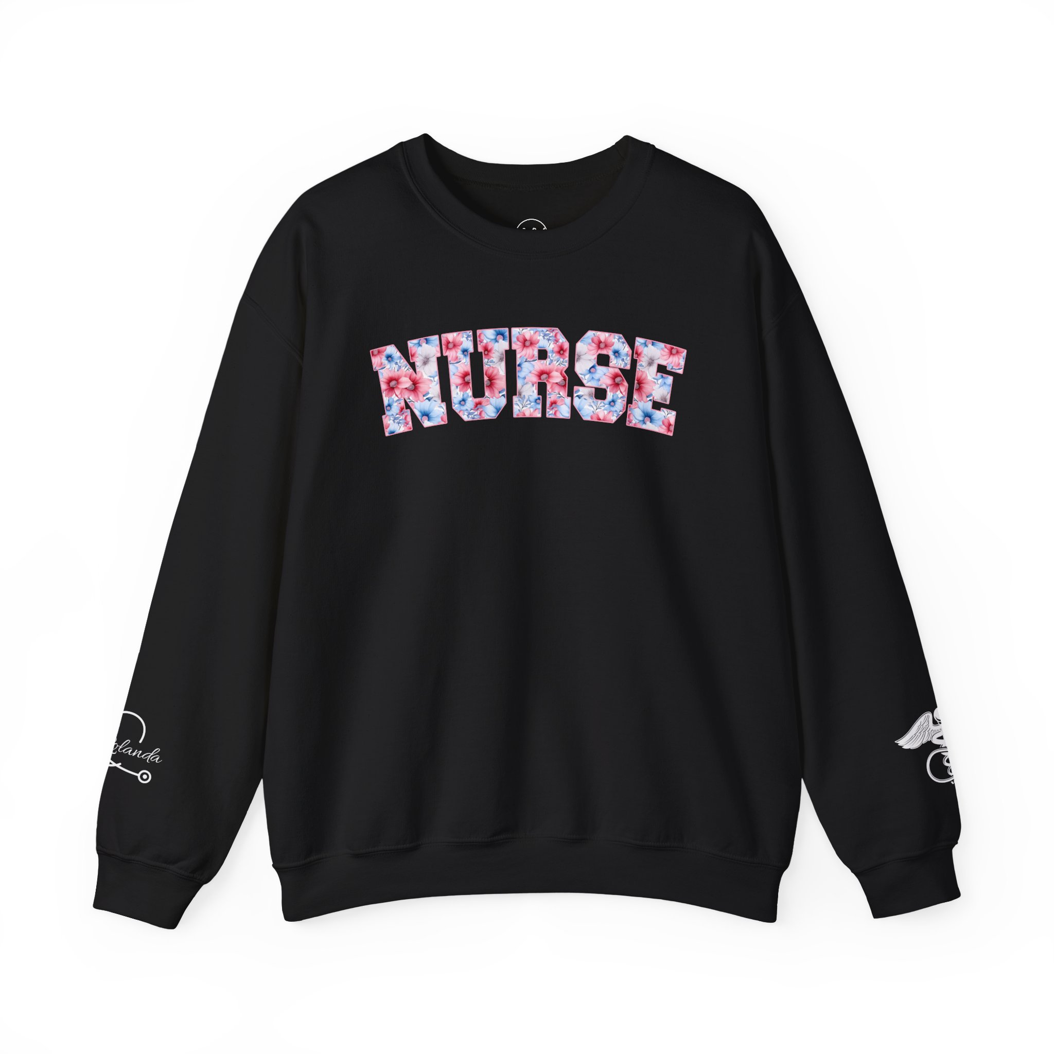 Soft, roomy, and quietly confident — this crewneck wraps long shifts and slow mornings in a calm, wearable hug. The slightly oversized cut and durable 50/50 cotton-poly fabric feel lived-in without losing shape. A floral-patterned “NURSE” across the chest adds a gentle, personal touch, while subtle sleeve prints peek out at the cuffs for a little surprise on every gesture. It’s the sort of sweatshirt that moves from charting stations to coffee runs with ease — breathable, low-itch, and built to keep up with long days and heartfelt moments.
