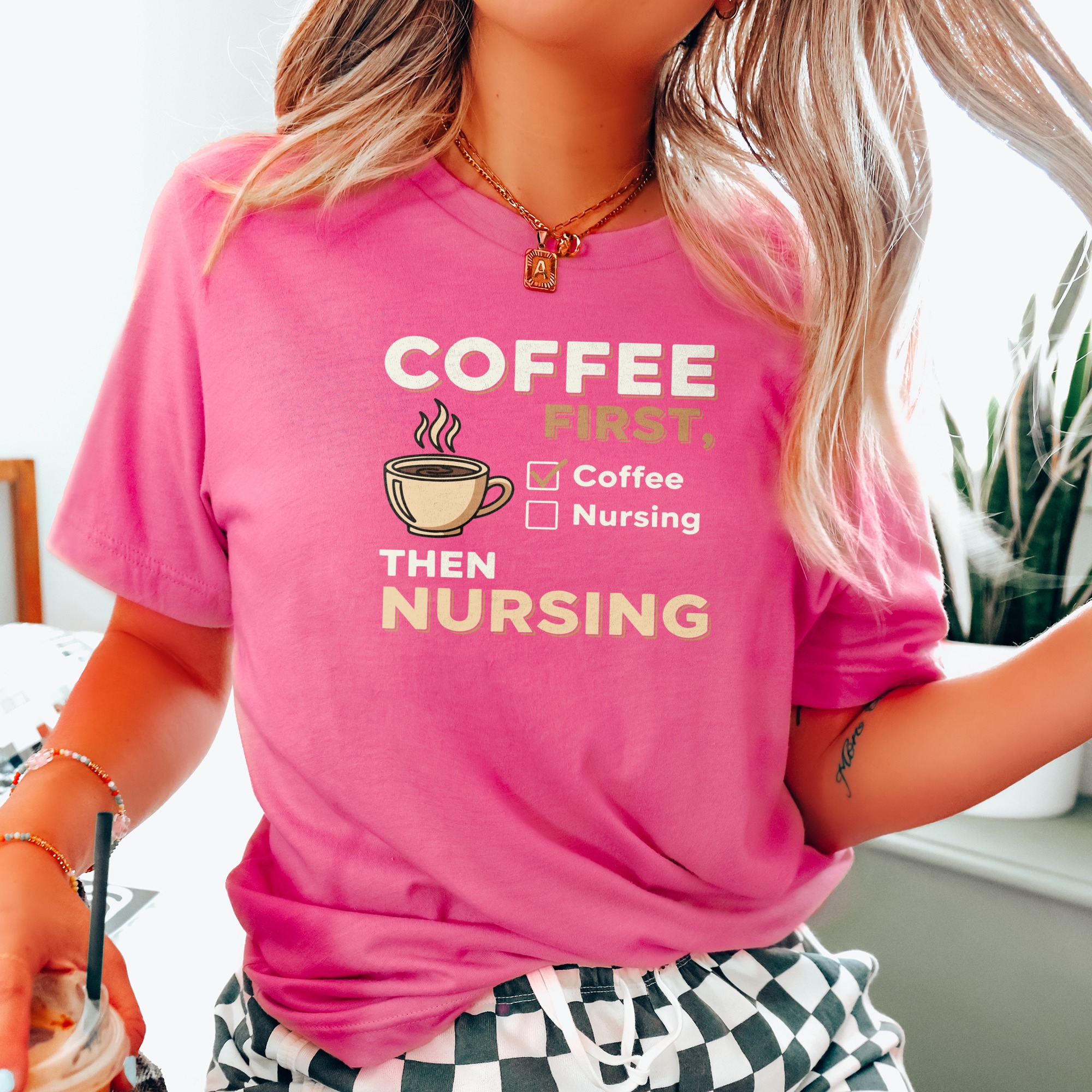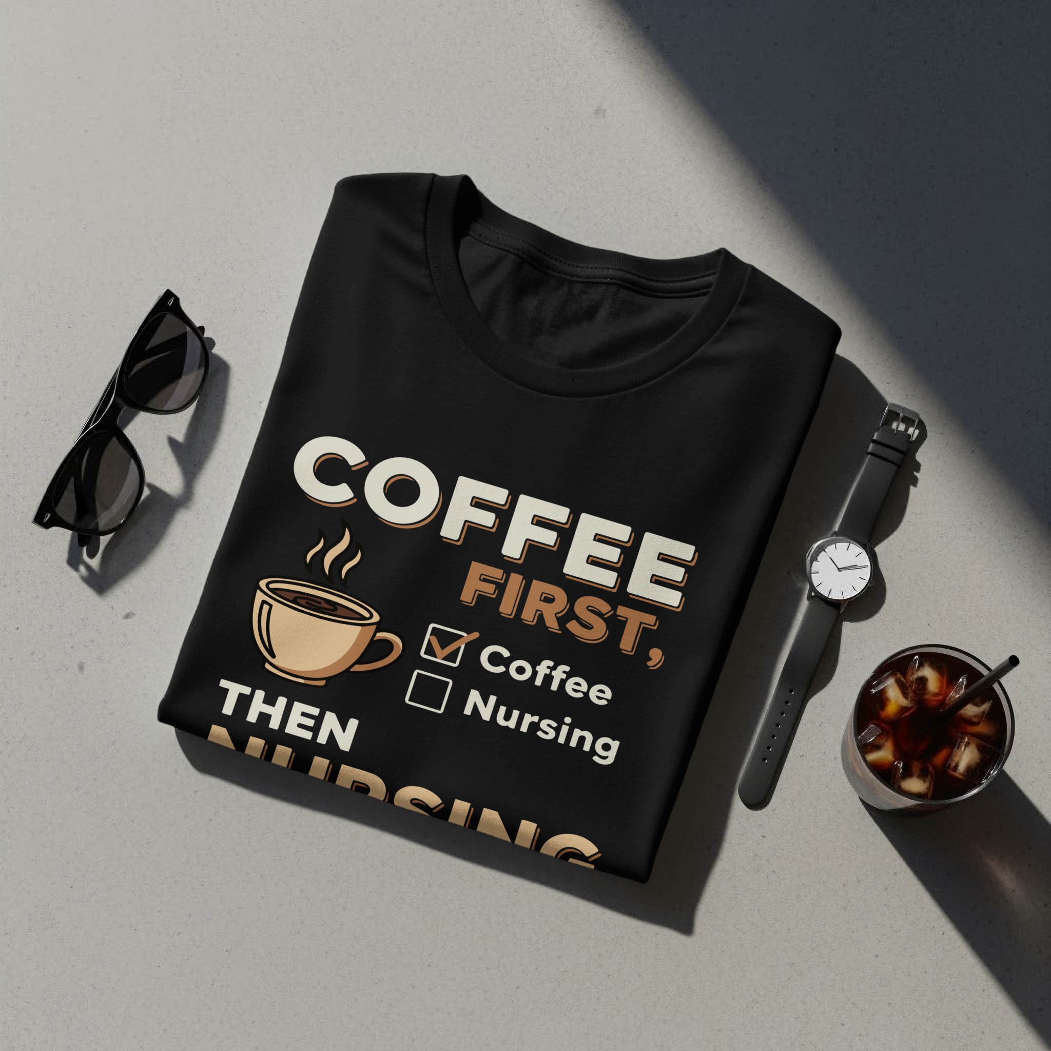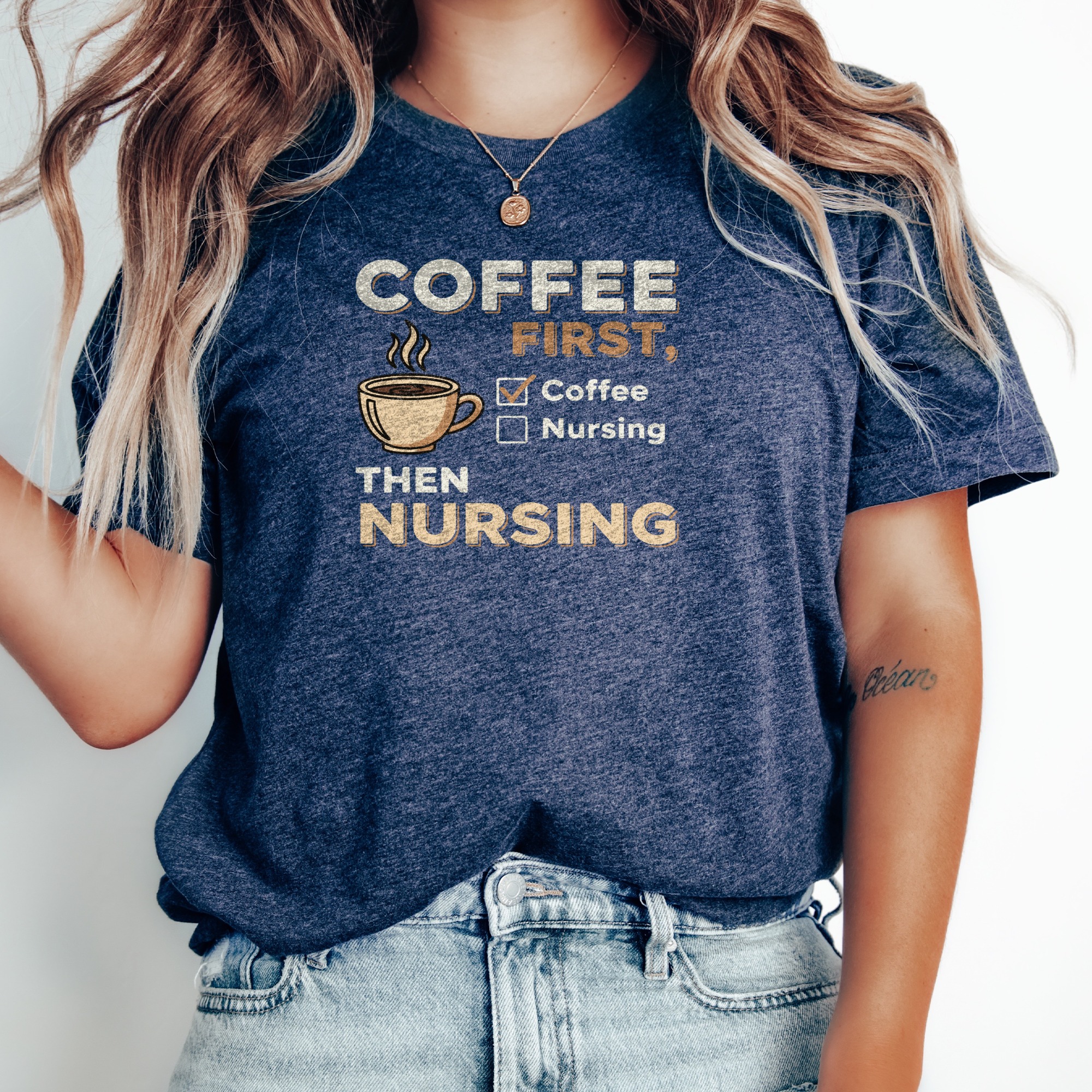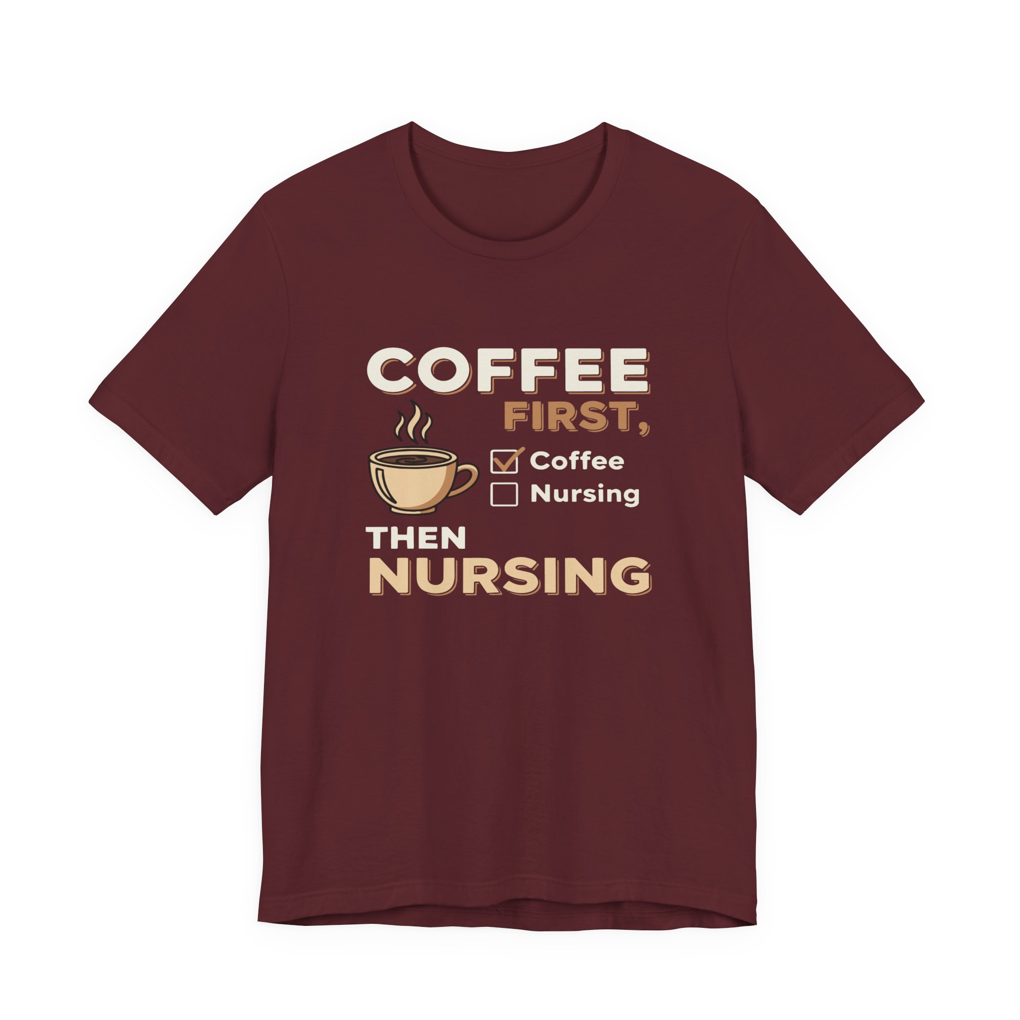 You need coffee before the shift — loud, honest, and a little bit grumpy. This lightweight jersey tee carries that feeling on your chest with a cheeky “Coffee First Then Nursing” design that reads like a morning mantra. Soft Airlume cotton keeps you comfortable during early rounds, charting, or a quick break in the staff room. The retail fit and crew neckline layer easily under scrubs or a cardigan. Durable construction details — side seams, shoulder tape, and a ribbed collar — mean the tee keeps its shape through wash cycles and long shifts. It’s a straightforward, wearable nod to the caffeine-fueled workday of nurses who prize function, comfort, and a touch of humor.