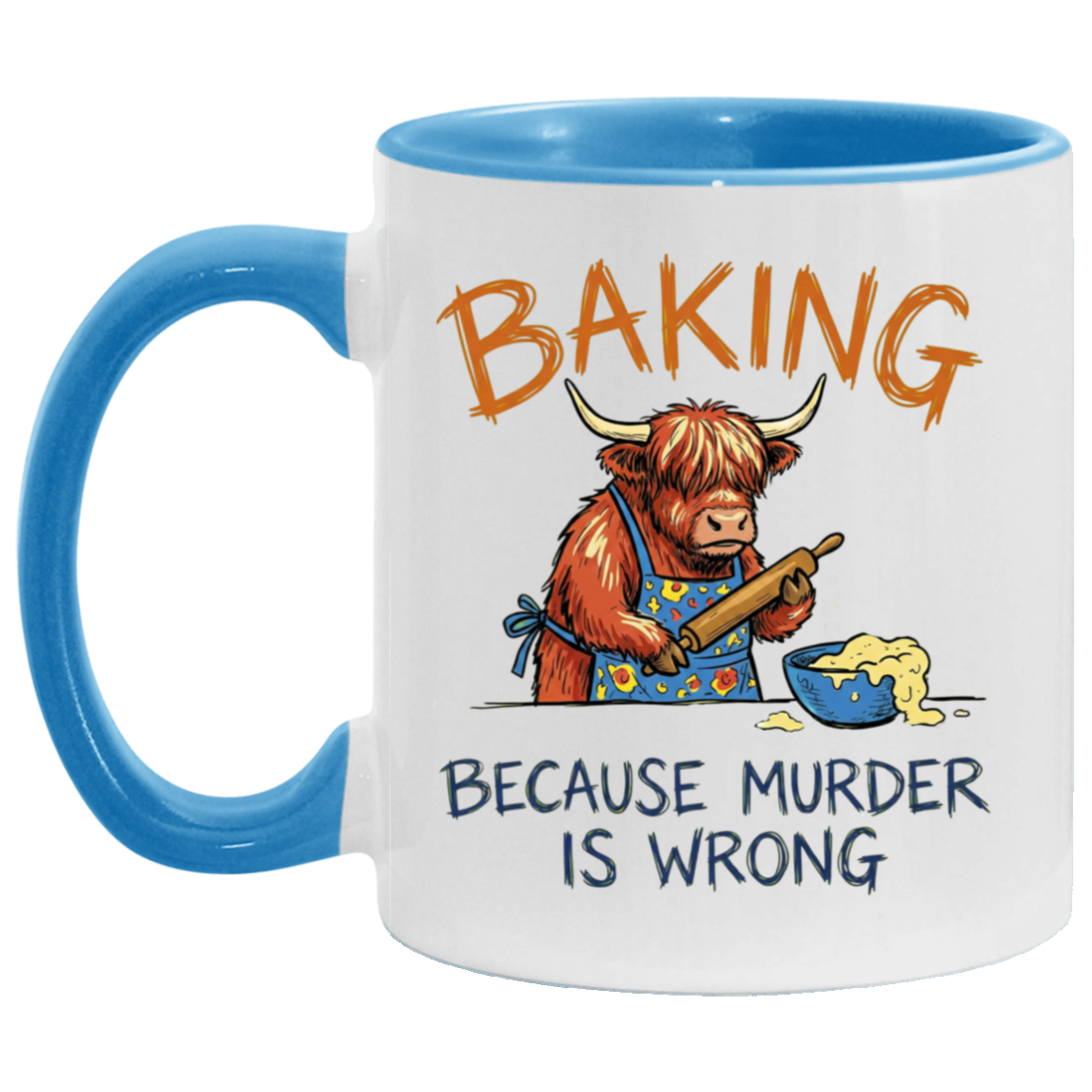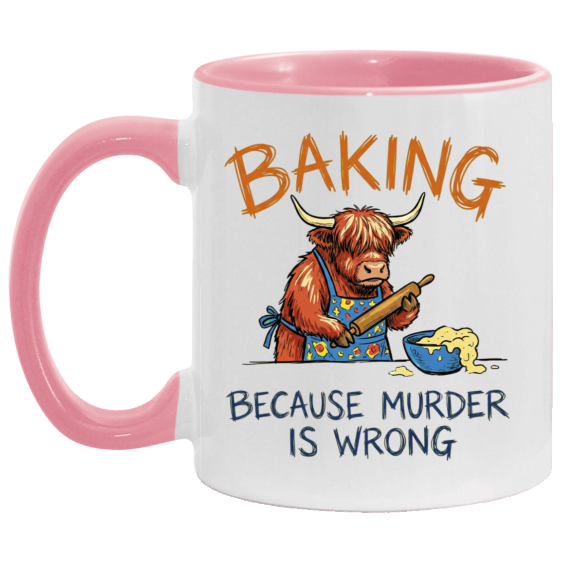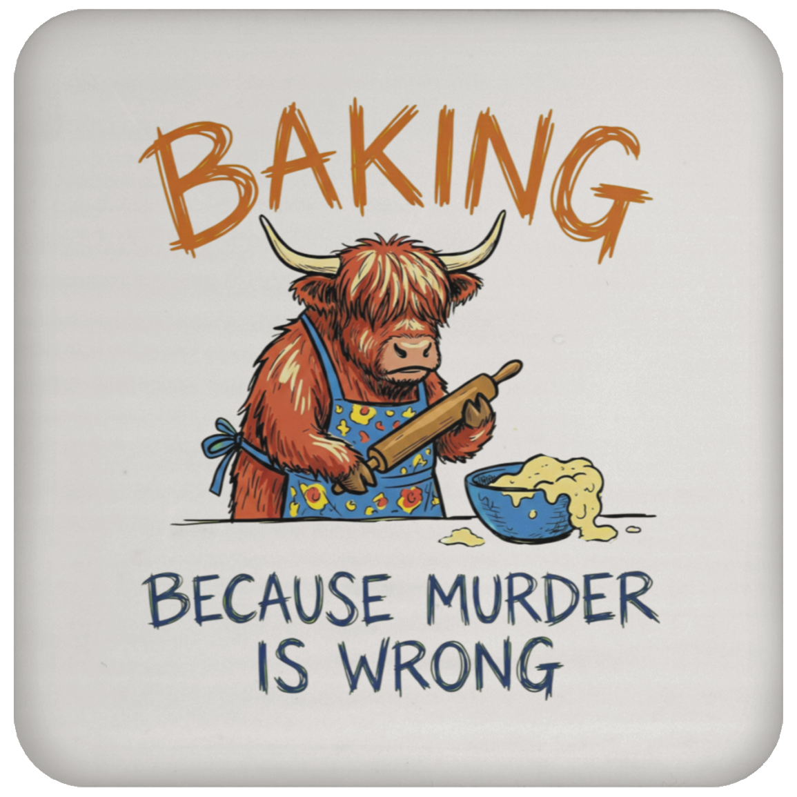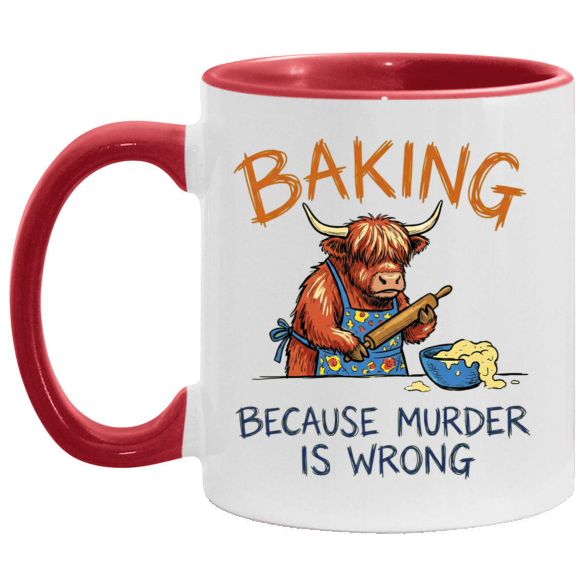Let’s face it: sometimes the only thing stopping you from snapping is a rolling pin and some fresh dough. This hilarious “Baking Because Murder Is Wrong” mug features a grumpy yet lovable Highland Cow working through some issues in the kitchen. It is the ultimate statement piece for anyone who finds their sanity in the oven.