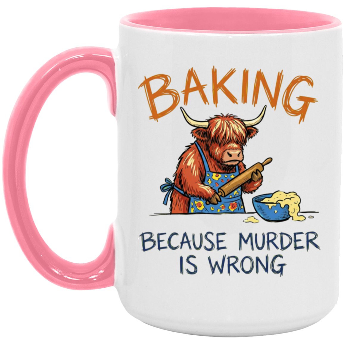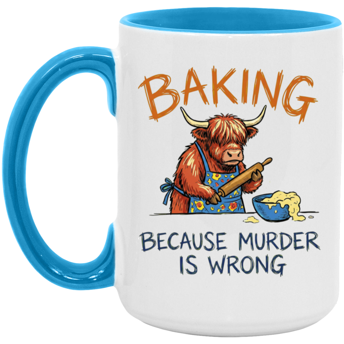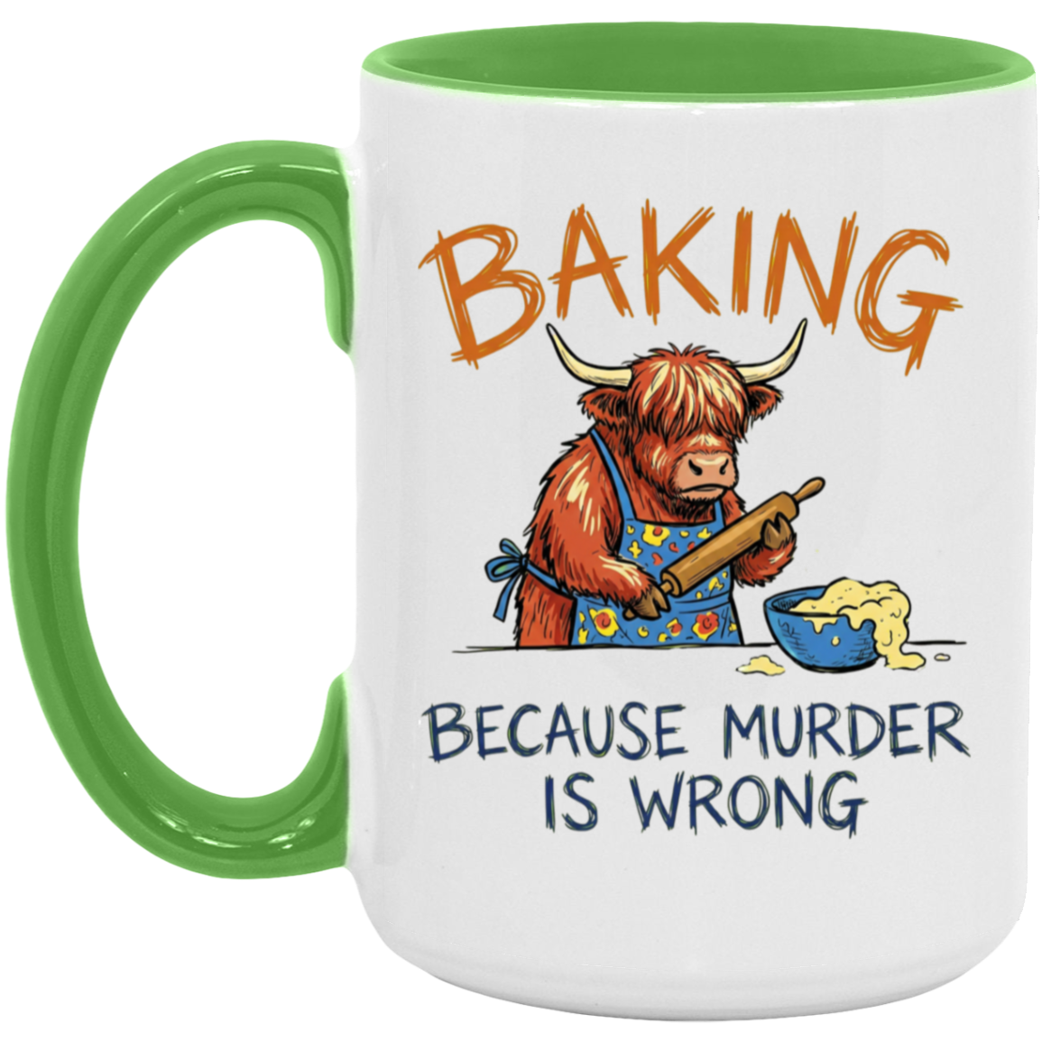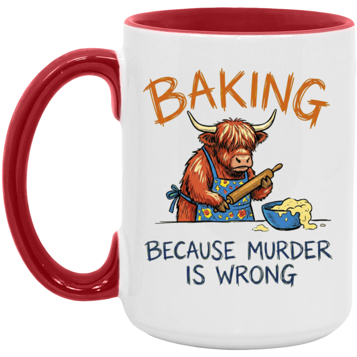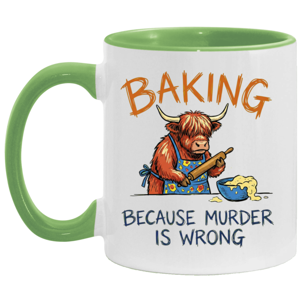 Let’s face it: sometimes the only thing stopping you from snapping is a rolling pin and some fresh dough. This hilarious “Baking Because Murder Is Wrong” mug features a grumpy yet lovable Highland Cow working through some issues in the kitchen. It is the ultimate statement piece for anyone who finds their sanity in the oven.