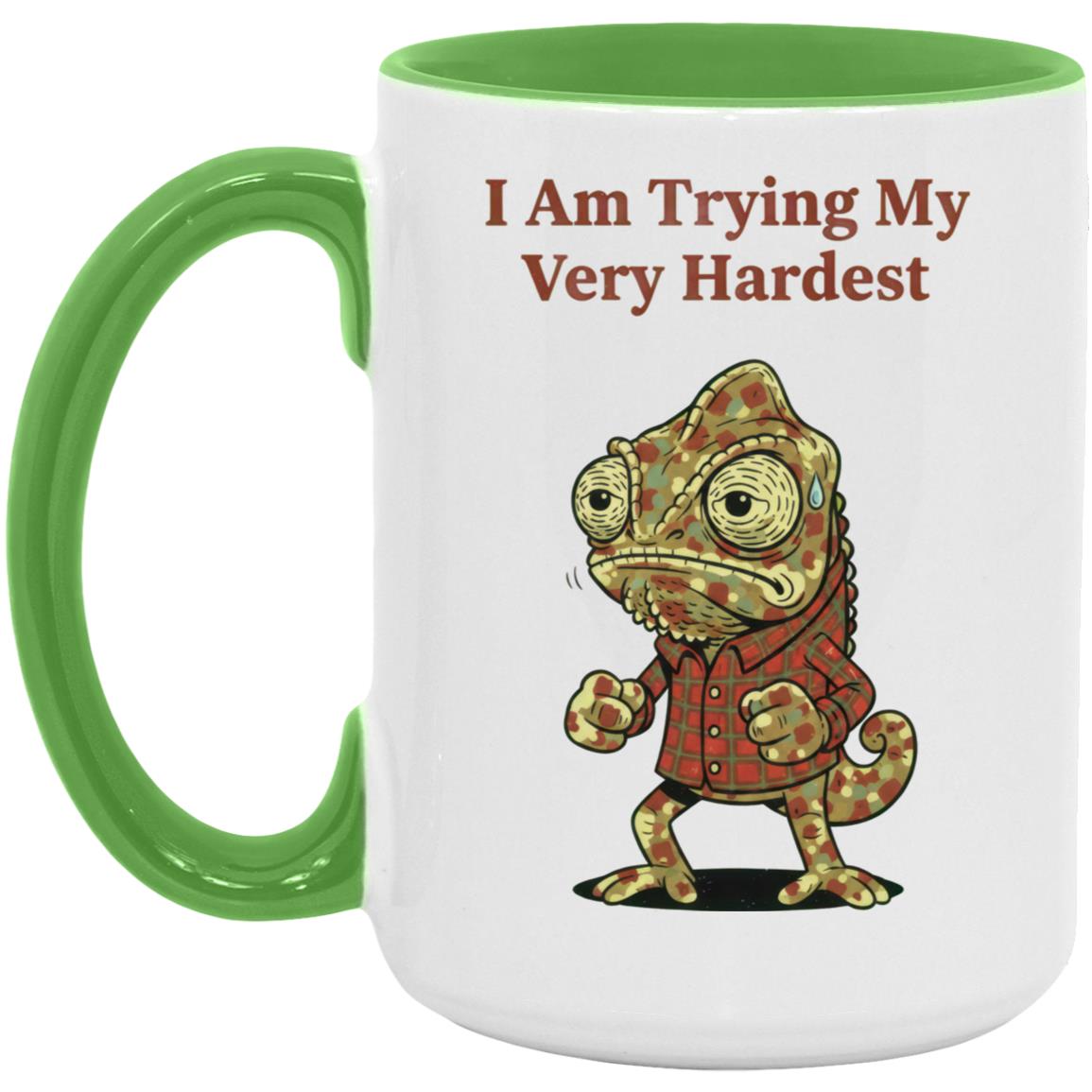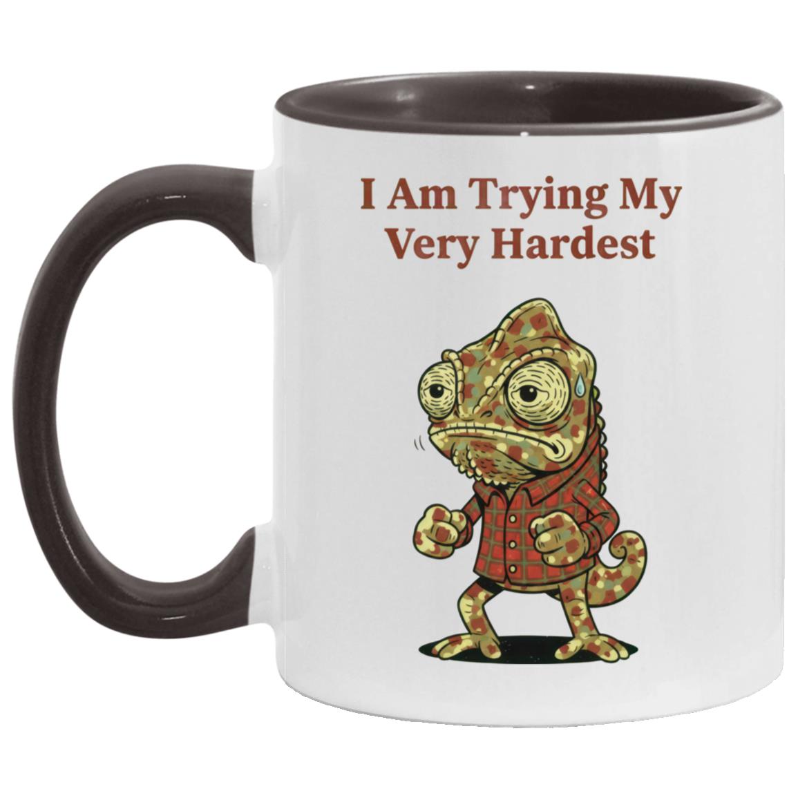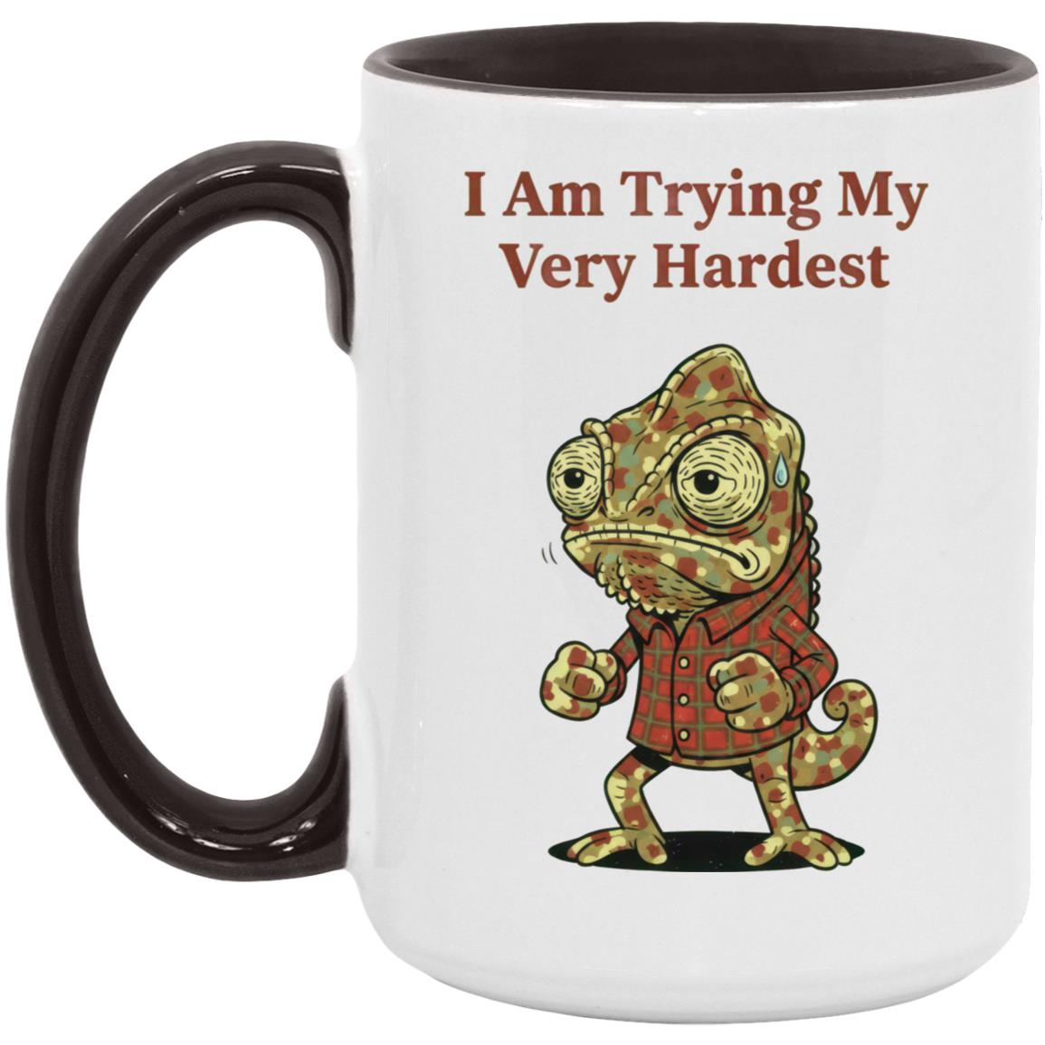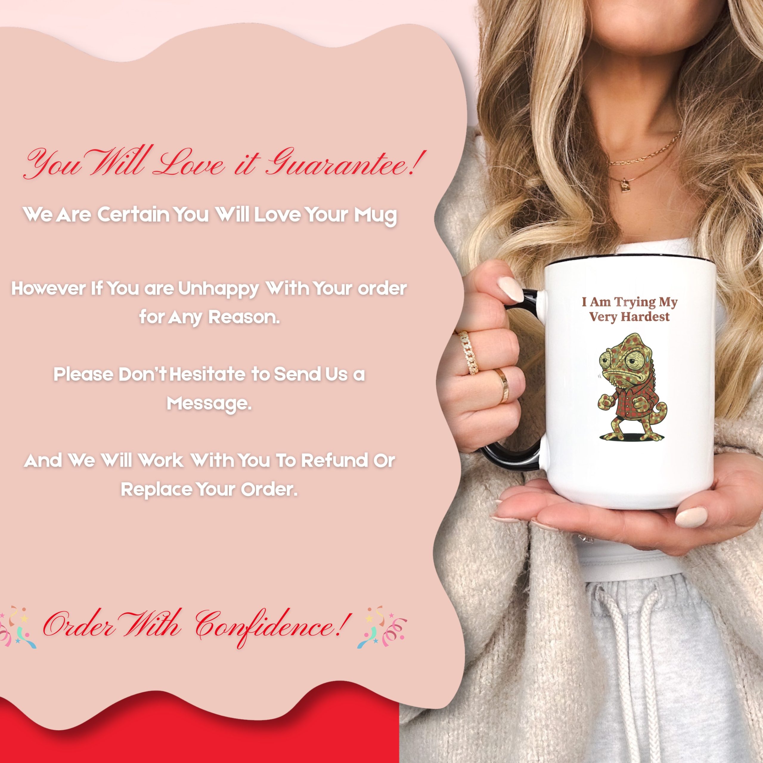 Look, we can’t all be high-functioning social butterflies. Some of us are just like this I Am Trying My Very Hardest Chameleon—clinging to the branch of sanity while wearing a flannel shirt and hoping nobody notices the eye twitch. If your current vibe is “barely holding it together but still showing up,” this mug is your new spirit animal.