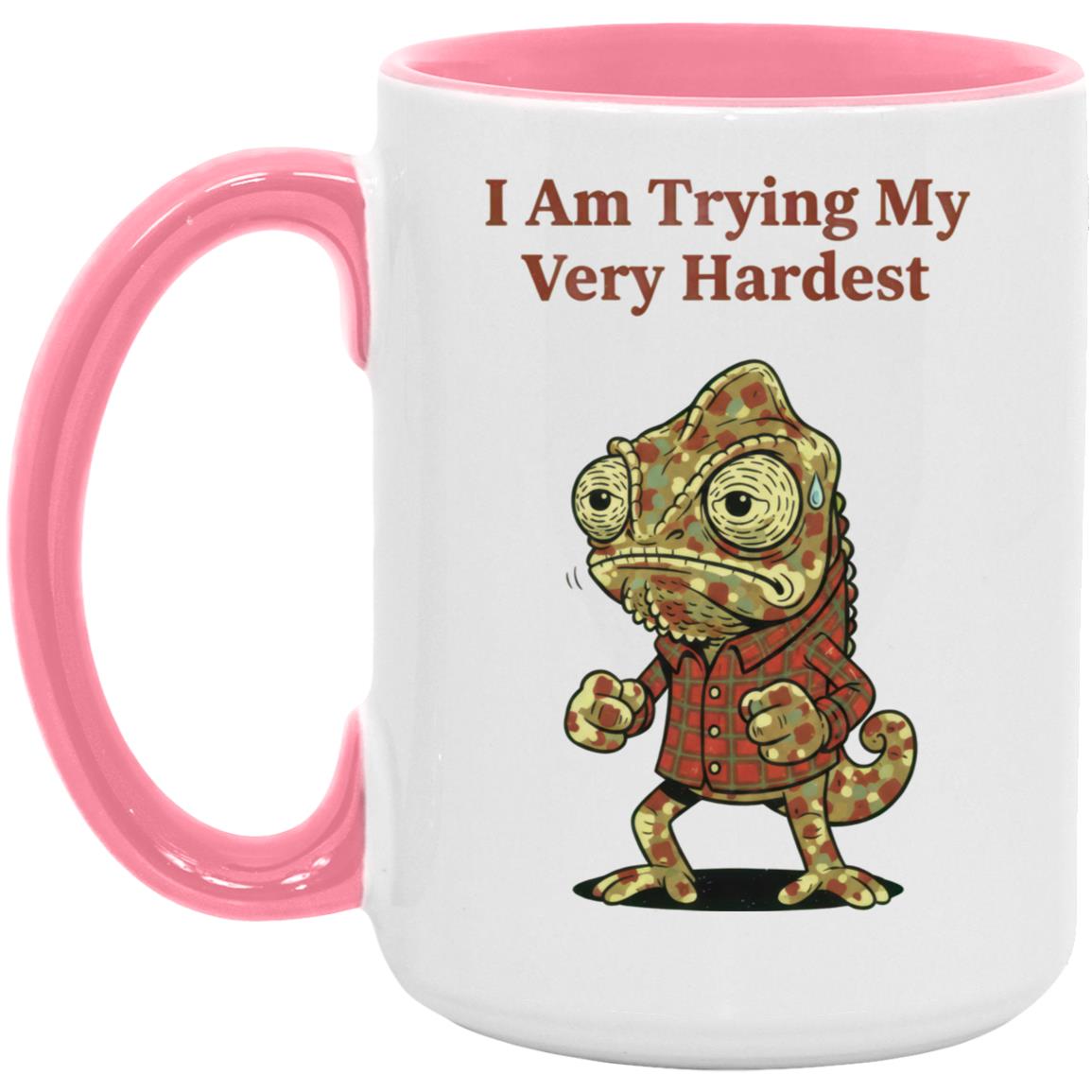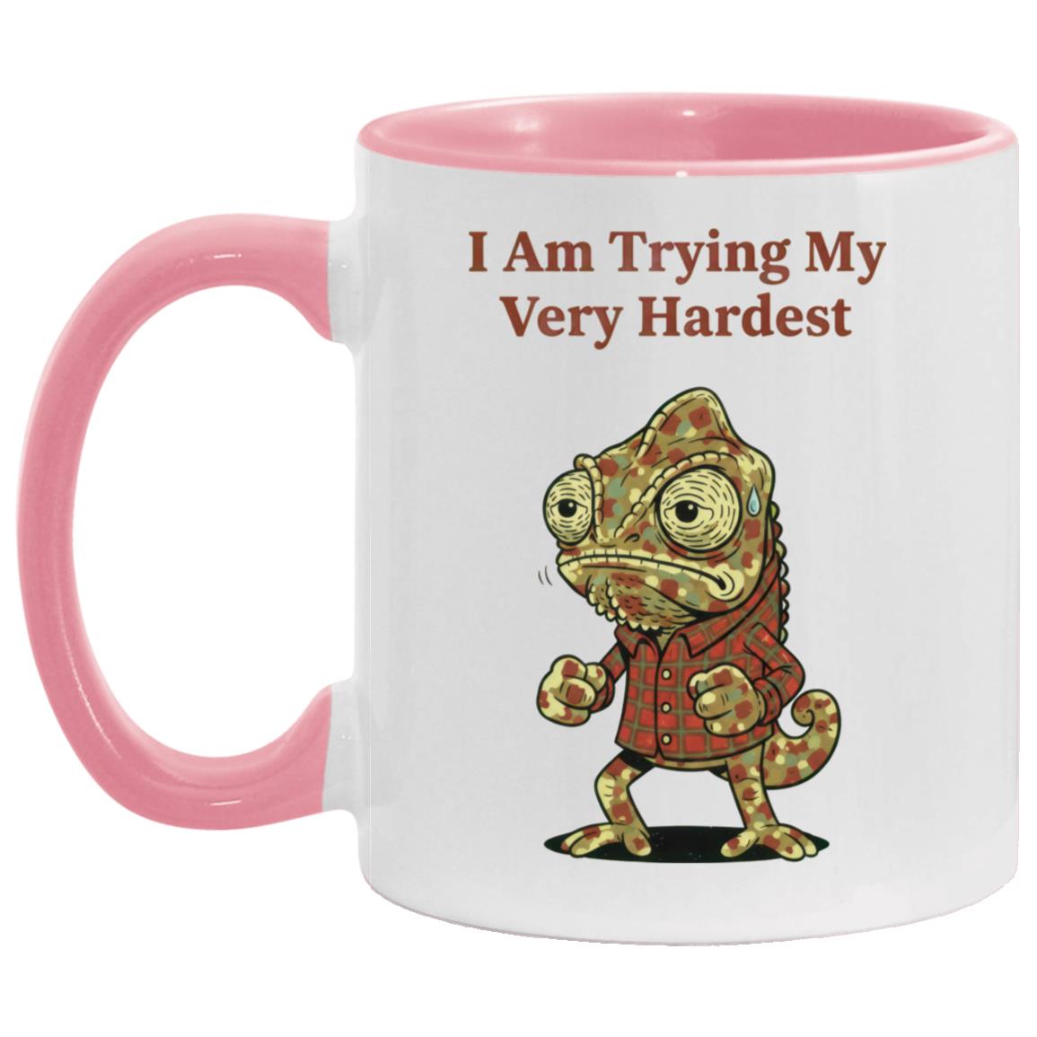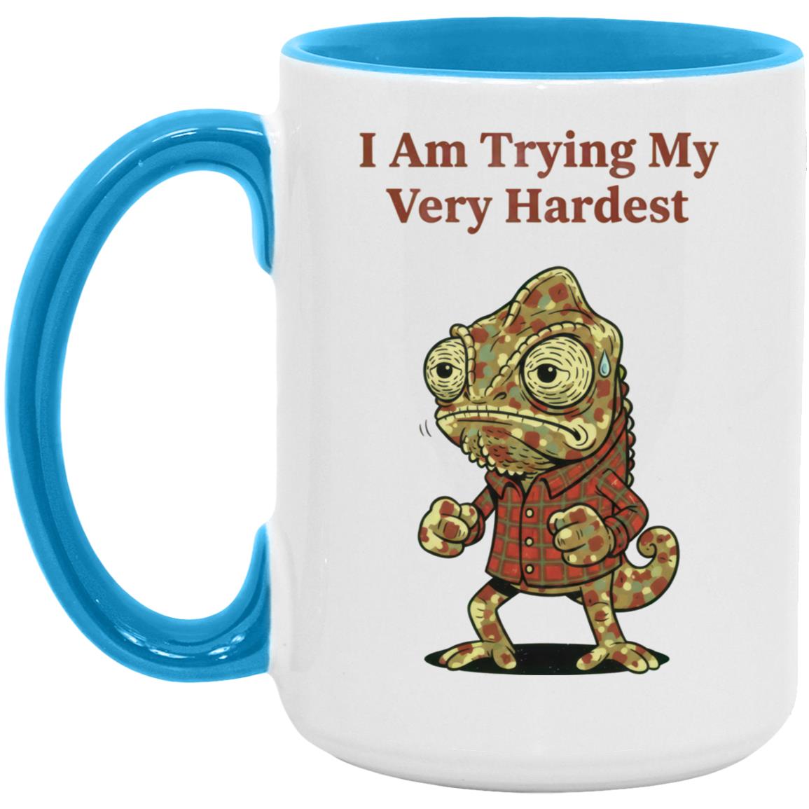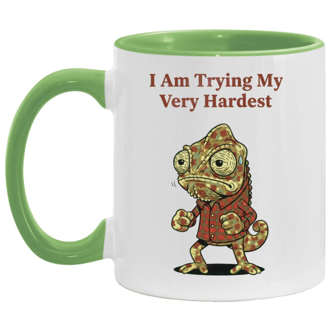 Look, we can’t all be high-functioning social butterflies. Some of us are just like this I Am Trying My Very Hardest Chameleon—clinging to the branch of sanity while wearing a flannel shirt and hoping nobody notices the eye twitch. If your current vibe is “barely holding it together but still showing up,” this mug is your new spirit animal.
