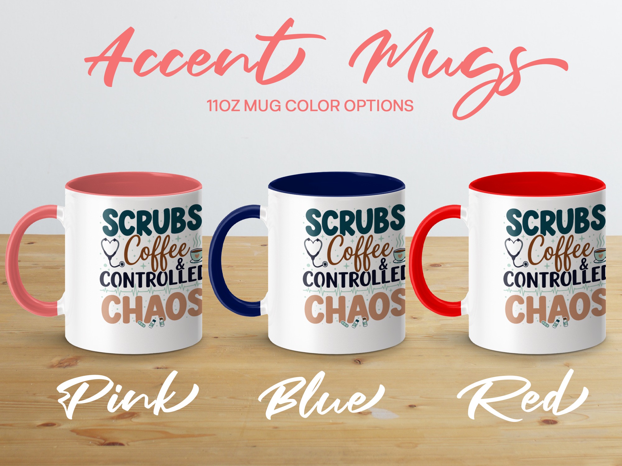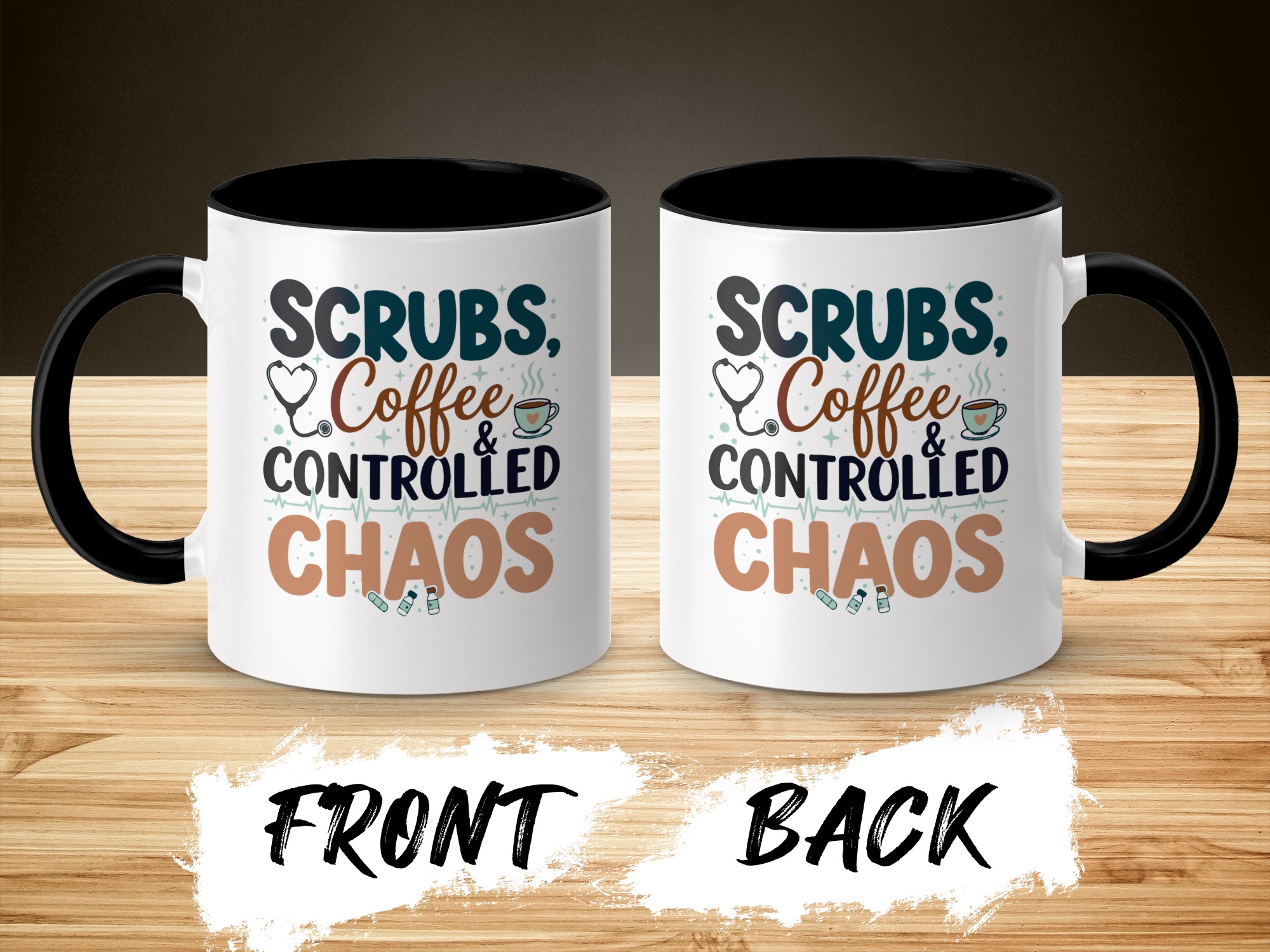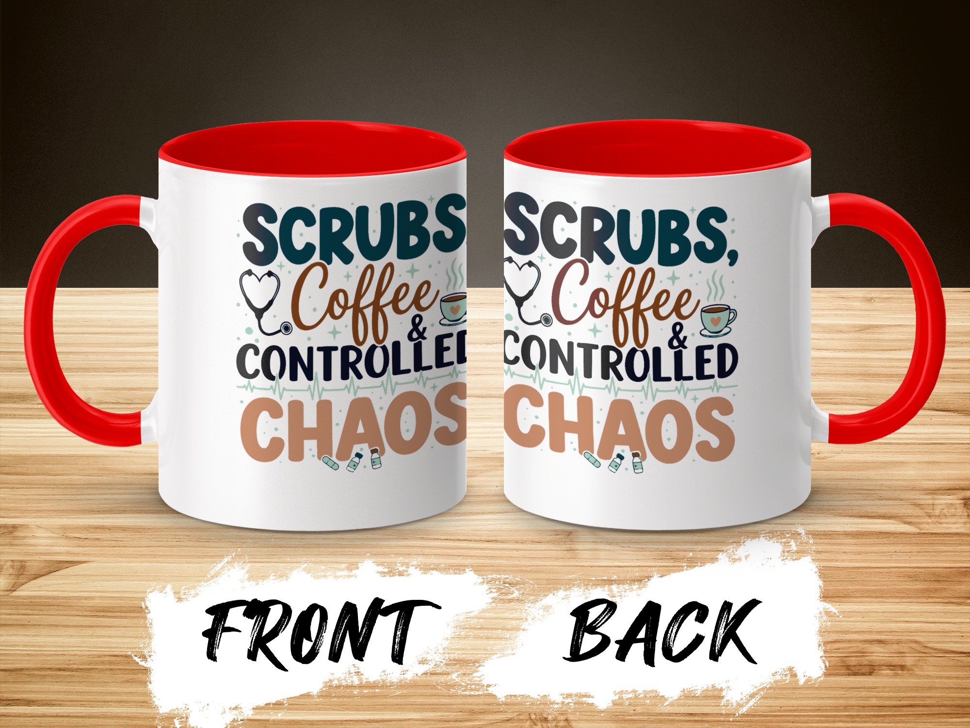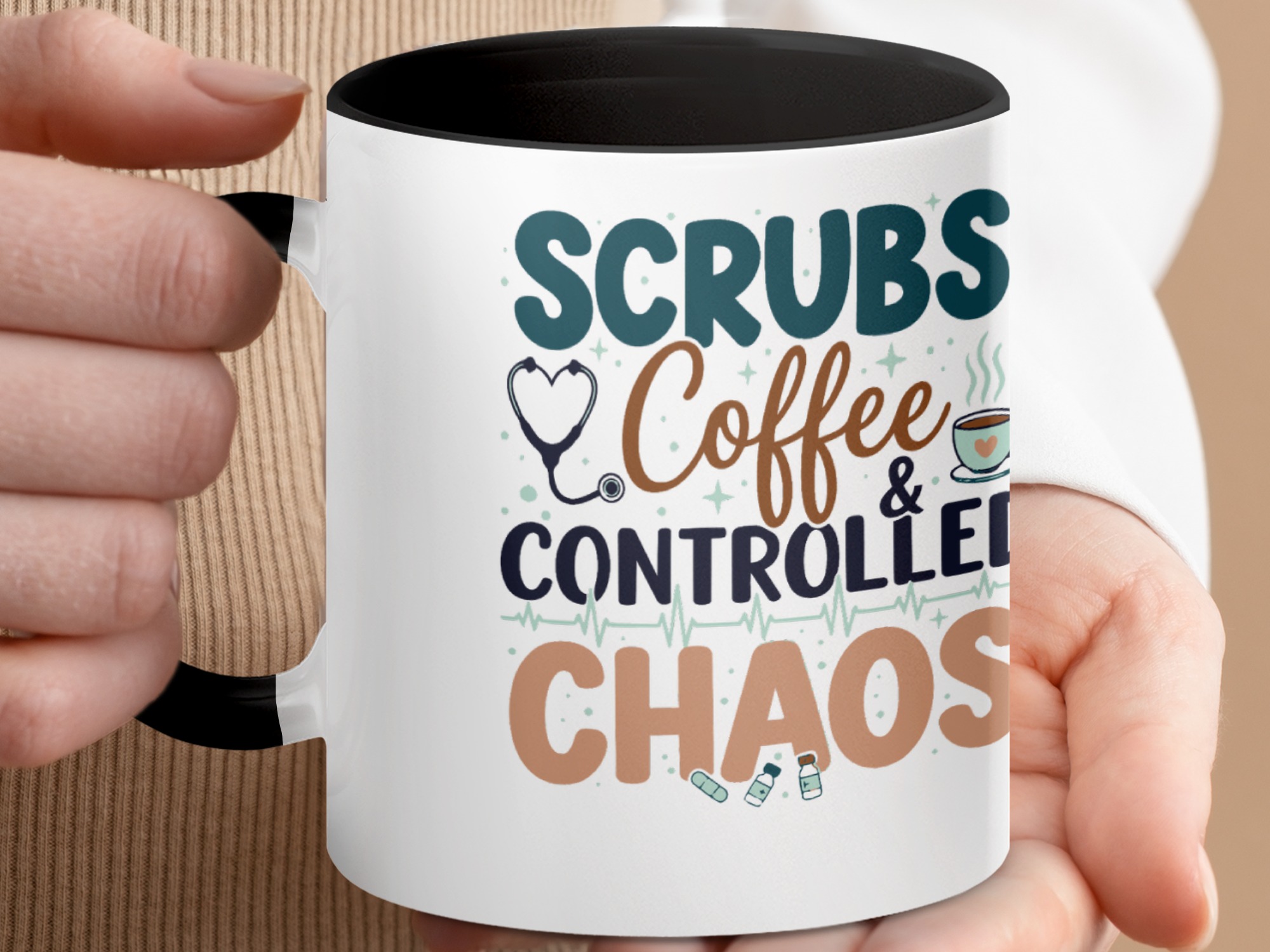 Morning chaos, contained. This ceramic mug holds those moments between bleary eyes and the first steady sip—lively, a little loud, and oddly comforting. The bold color contrast between the white exterior and the colored interior and handle feels like a wink on a hectic shift, an accessory that stands up to repeated use while keeping its pop. It fits into scrubs pockets between rounds, waits patiently on nurse stations, and brings a small, bright pause to breakroom conversations during overnight calls or early shifts. The glossy finish and crisp, vibrant print keep the design readable through countless washes, and the generous 11 oz or 15 oz options mean you can choose a short, strong dose of caffeine or a longer, slow-sip rescue. Safe for microwave and dishwasher, lead- and BPA-free—this mug is built to handle the controlled chaos of clinical life without fuss.