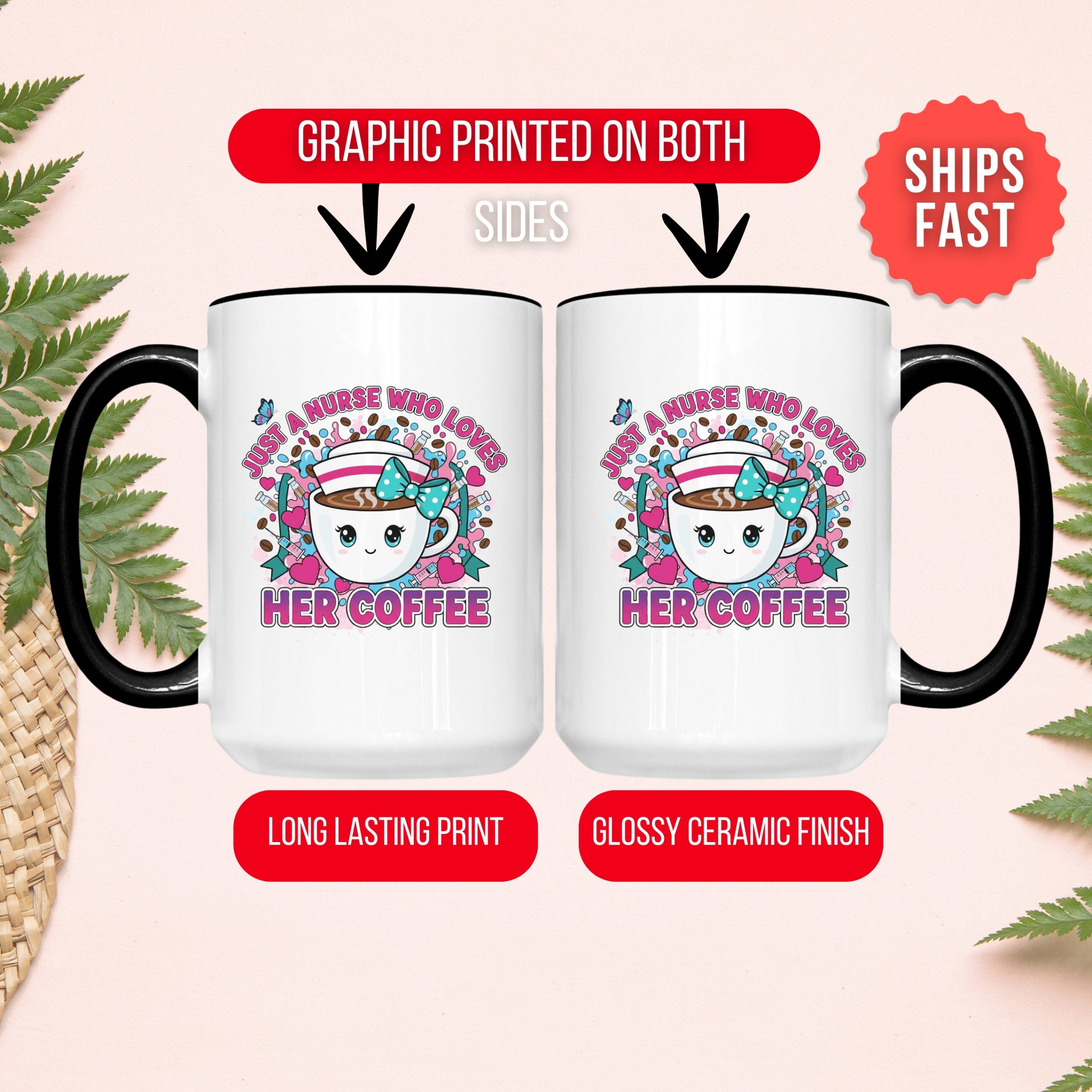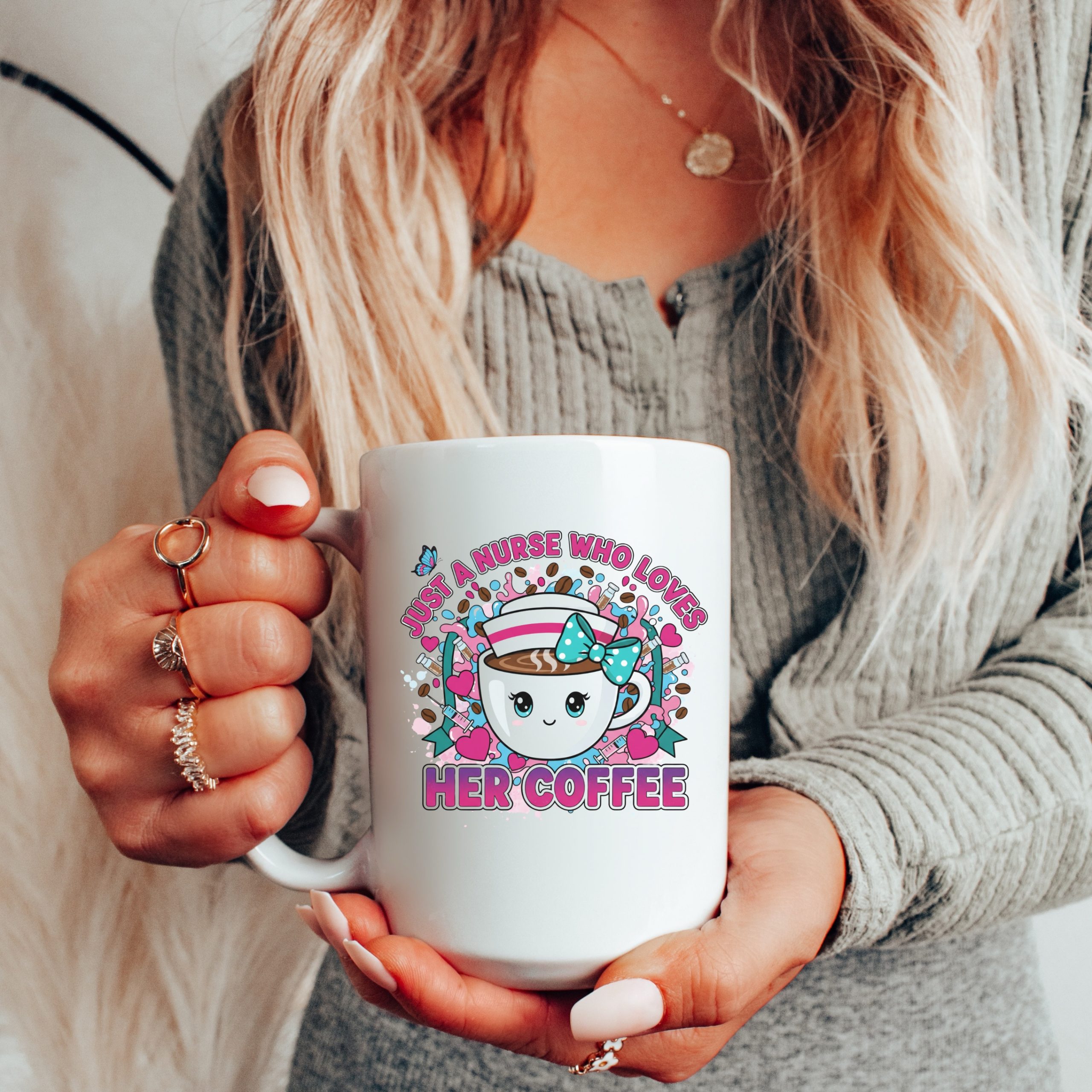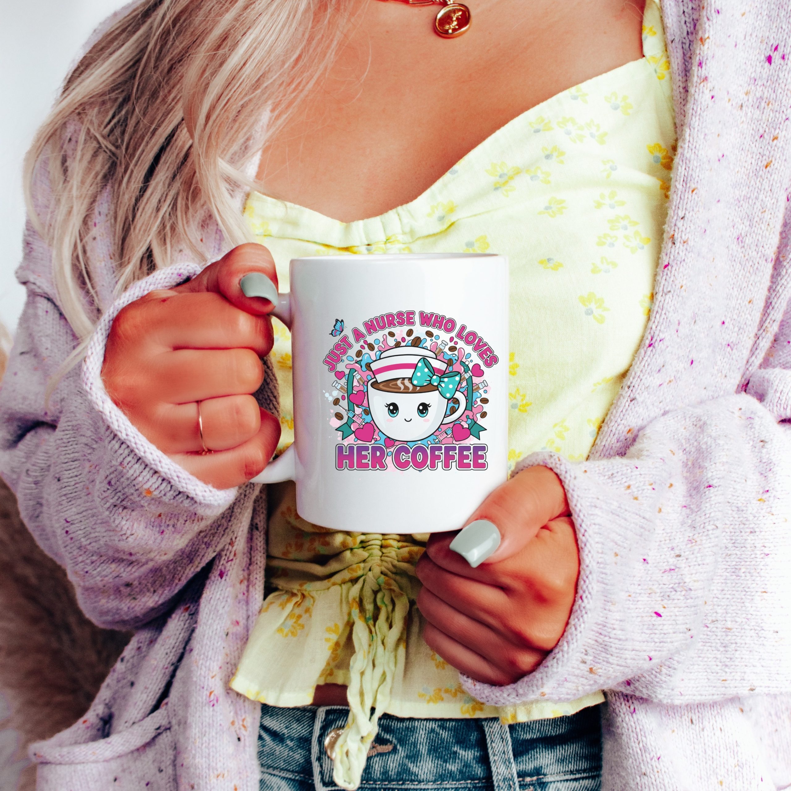 Fuel your shift with a dose of cuteness! This Just a Nurse Who Loves Her Coffee mug is the ultimate companion for those early rounds and long night shifts. Featuring an adorable, wide-eyed coffee cup sporting a classic nurse’s cap and a teal polka-dot bow, this vibrant design captures the heart of healthcare heroes who run on caffeine and compassion.